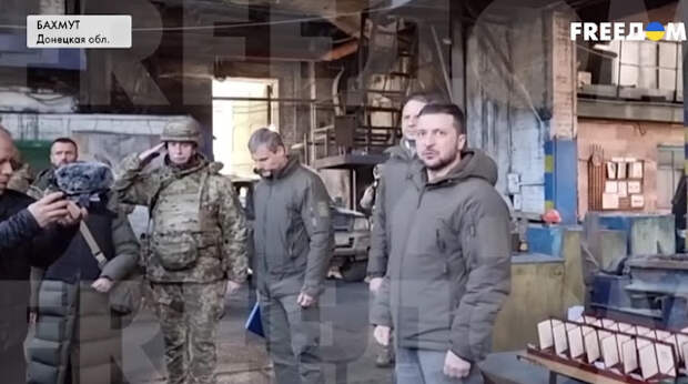 На самом деле поступила информация, что Зеленский, всё-таки, вылетел на военном борту из немецкой базы Рамштайн. А это ещё дальше: только по прямой 1700 км. Если добирался на вертолётах (с пересадками), то 5-6 часов лёта. То есть, прибыл где-то вечером, что можно проделать только в режиме нон-стоп. Однако есть ещё один нюанс: маршрут из Киева в Бахмут (а по ходу в Славянск и Краматорск), а затем обратно, в Рамштайн – это заведомо целые сутки, хоть ты тресни.
